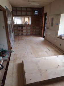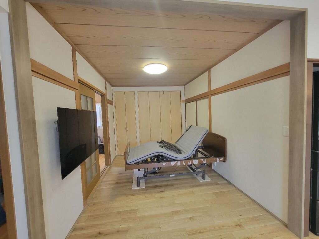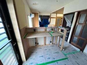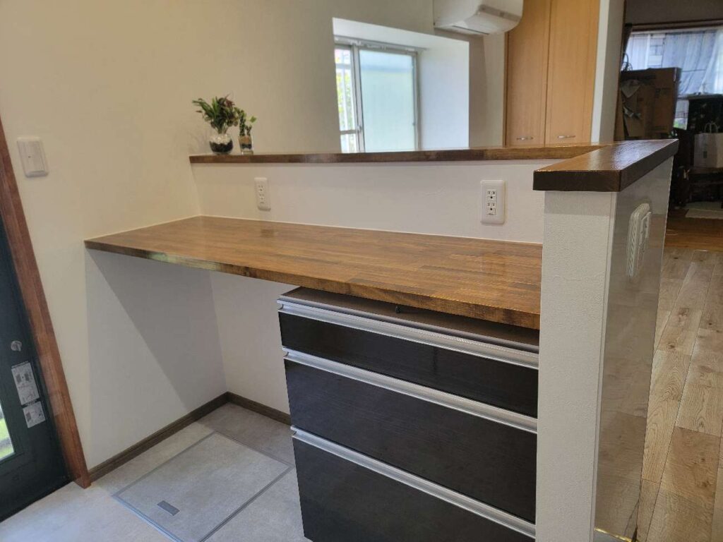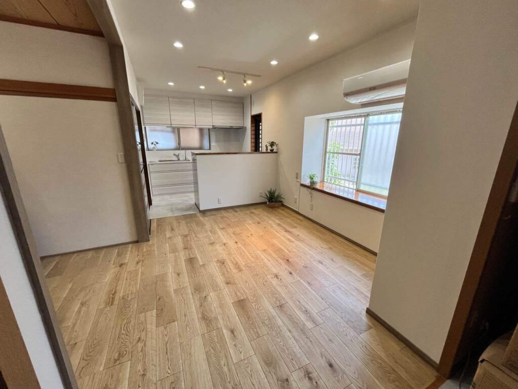 元々、ダイニングに繋がる背面収納に吊戸棚があることで、圧迫感があり狭く感じましたが、吊戸棚を無くしたことですっきりと開放的な見晴らしの良い空間へと変わりました。ダイニングと和室を1つの部屋に改修し、床の張替えも相まって更に広々とした明るい空間にすることができました。