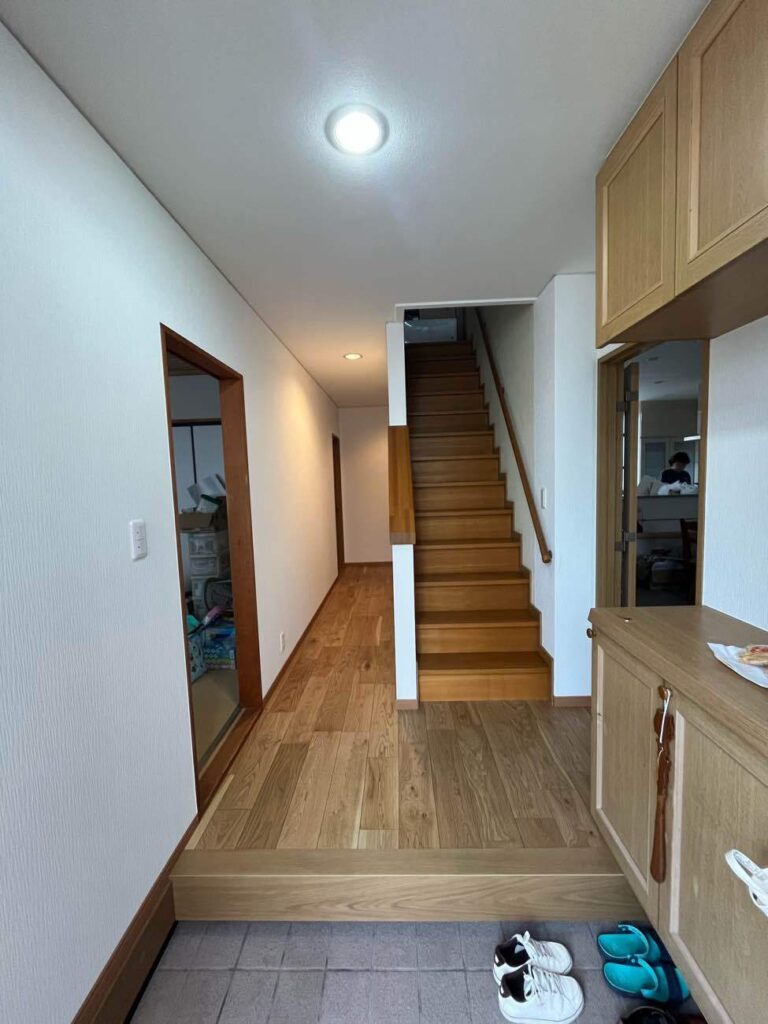 リビングや玄関の床を上張りし、クロスを張り替え、まるで新築の様に生まれ変わりました。お客様のご希望を十分に叶えることができました。